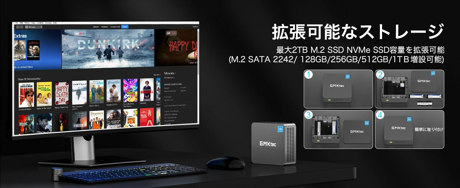 • ストレージ512GB (M.2 2280 Max1TB)のほかM.2 2242 SATA Max2TBまで