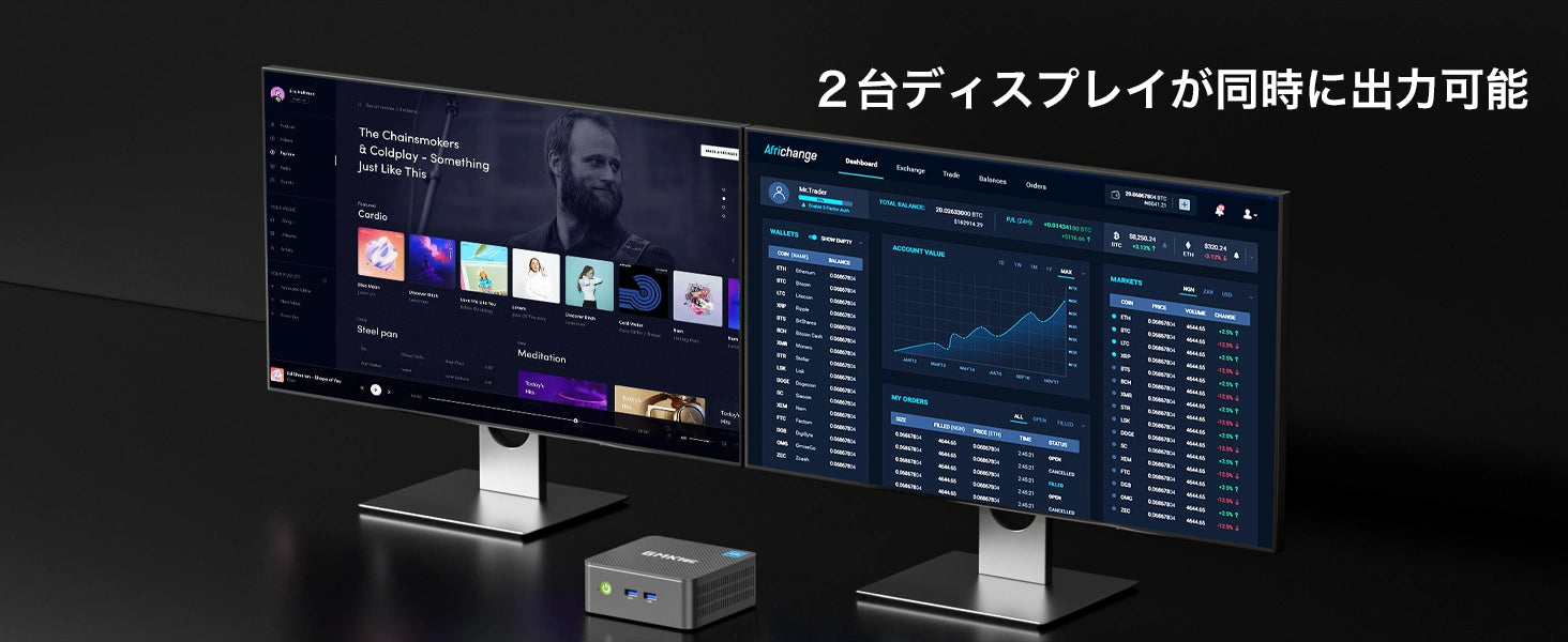 • 【臨場感あふれる4K画質+2画面出力対応】 4K映像出力可能なHDMIポートを搭載、2台のモニターをデスクトップpcに4K画質で同時に出力することができます。また、従来のmini pcよりも約3倍の速度で通信できる次世代通信規格「Wi-Fi 6」に対応。12台のデバイスが同時に通信可能で休憩やリラックスするときも、インターネットや動画、写真などを4K UHDの大画面でゆったりとお楽しみいただけます。