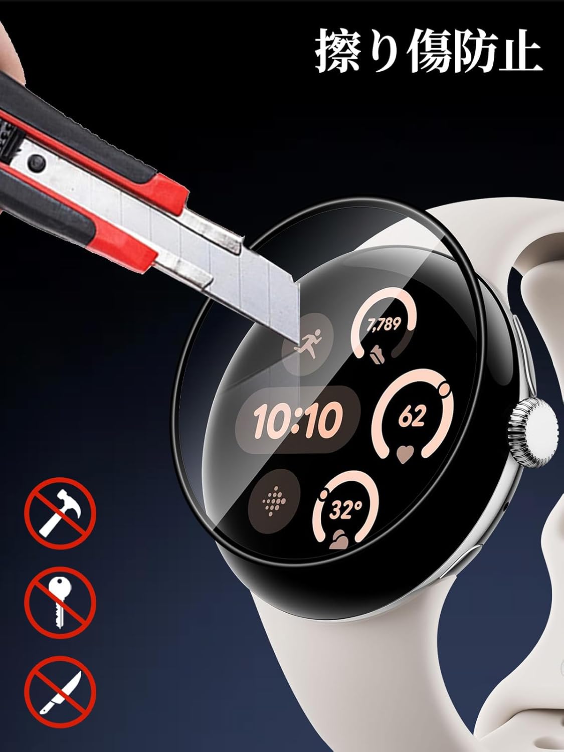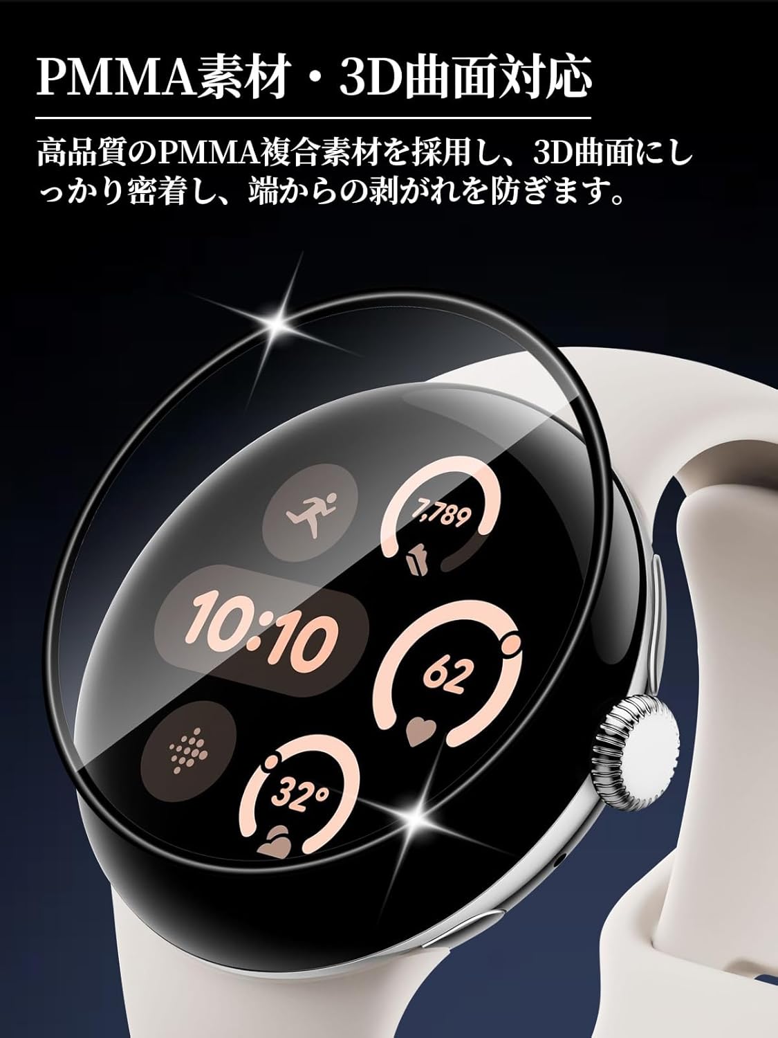 が、Pixel Watchも4代目になり、そのあたりを改善した保護フィルムくらい登場しているのではないかと思いたち、購入してみたものです。