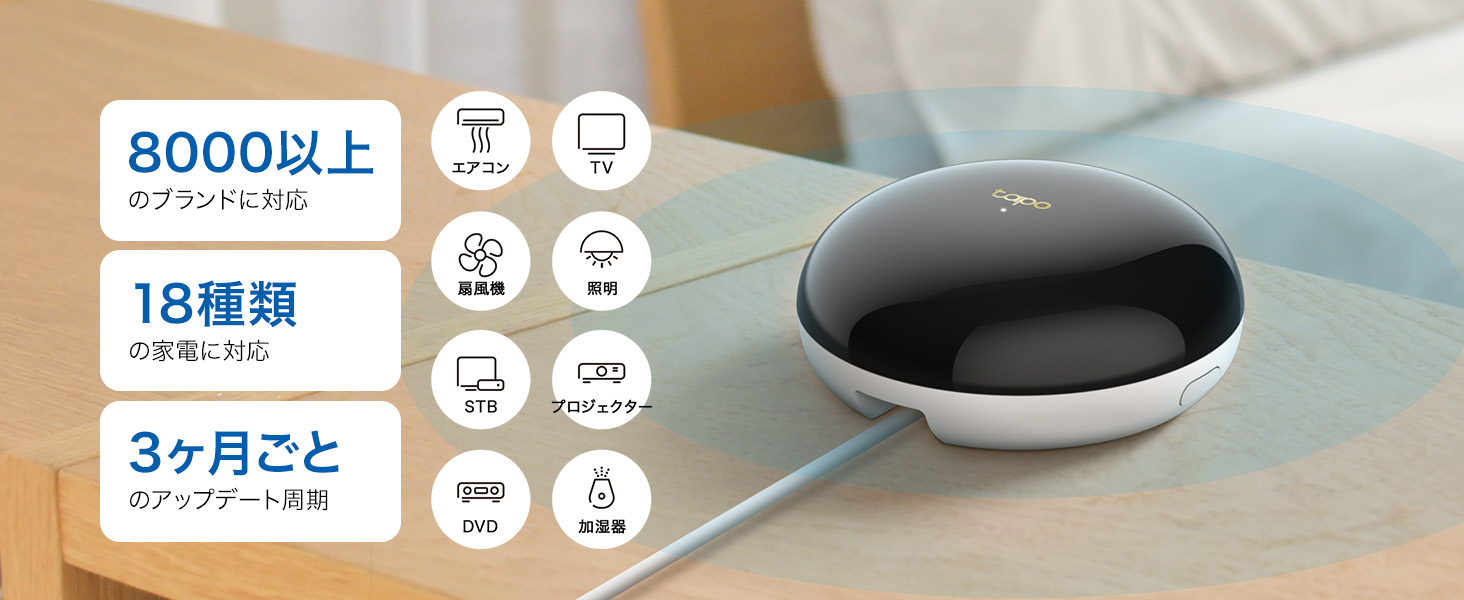- [特徴] Tapoのスマートリモコンが登場!他のTapoと併せて、新時代のスマートホームを構築しよう。
